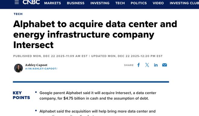 Alphabet以47.5亿美元现金收购Intersect,加码数据中心电力布局