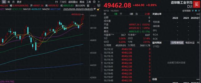 美股市场表现 - 当地时间1月6日,美国股市三大股指全线上涨,道琼斯工业指数涨0.99%至49462.08点,逼近5万点整数关口,标准普尔500指数涨0.62%至6944.82点,纳斯达克指数涨0.65%至23547.17点,其中道指和标普500指数均创历史收盘新高[1][3] - 美股市场芯片股普遍上涨,费城半导体指数涨2.75%,刷新历史新高,微芯科技涨超11%,美光科技涨逾10%,恩智浦半导体涨超9%,德州仪器涨逾8%,拉姆研究涨超6%,高通涨逾3%[1][5] - 大型科技股涨跌互现,特斯拉跌超4%,苹果跌近2%,谷歌、英伟达跌幅不足1%,亚马逊涨超3%,微软涨逾1%,Meta小幅上涨[5] - 能源股多数下跌,雪佛龙跌逾4%,埃克森美孚跌超3%,康菲石油跌超2%,斯伦贝谢跌幅不足1%,西方石油涨超1%[5] - 美股抗疫概念股集体上涨,Moderna涨近11%,阿斯利康涨超4%,吉利德科学涨逾2%,BioNTech涨逾1%[6] - 黄金股集体上涨,盎格鲁黄金涨近6%,科尔黛伦矿业、哈莫尼黄金均涨超5%,金罗斯黄金、巴里克黄金均涨逾4%[7] 中概股市场表现 - 中概股多数下跌,纳斯达克中国金龙指数跌0.78%[7] - 涨幅居前的中概股方面,脑再生涨超22%,禾赛科技涨逾10%,亚朵、小马智行均涨超5%,华住集团涨近5%,霸王茶姬、搜狐均涨逾3%[7] - 跌幅居前的中概股方面,无忧英语跌逾10%,联掌门户跌逾7%,阿特斯太阳能、BOSS直聘、老虎证券均跌超6%,腾讯音乐跌逾4%,爱奇艺、阿里巴巴均跌逾3%[7] 美联储政策观点 - 美联储理事米兰表示,预计后续经济数据趋势可能支持美联储进一步降息,美联储今年应降息超过100个基点[1][5] - 米兰认为基础通胀水平基本已回落至美联储2%的目标附近,并预计美国经济今年将保持强劲增长,若美联储未能下调短期借贷成本,这一前景可能会被破坏[5] - 同日,美国里士满联储主席巴尔金表示,2025年累计降息75个基点后,利率已进入所谓中性利率的估计区间,未来政策需要在充分就业和控制通胀的双重使命之间作出精细权衡[5] 大宗商品市场 - 国际白银价格再度暴涨,COMEX白银期货价格重新突破80美元/盎司大关,涨幅约6%,离2025年12月末创出的历史高点仅一步之遥,伦敦银现价格也大涨,亦重新突破80美元/盎司大关,涨幅超过6%[2][8] - 国际金价小幅上涨,COMEX黄金期货价格重新突破4500美元/盎司大关,涨幅超过1%,伦敦金现价格则逼近4500美元/盎司大关,涨幅约1%[8] - 其他大宗商品方面,NYMEX WTI原油期货走低,跌破57美元/桶,跌幅超过2%[9]