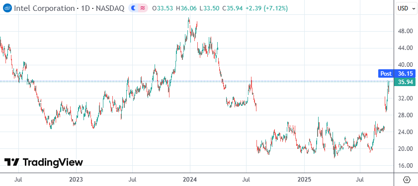 传美国超微公司(AMD.US)与英特尔(INTC.US)洽谈代工合作 后者股价大涨超7%