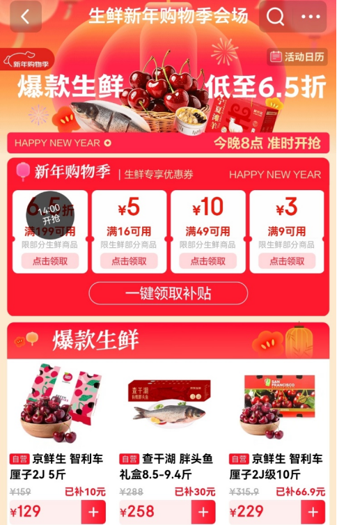 领取你的新年“第一口鲜”!京东生鲜新年购物季开启,多款爆品满199元享6.5折