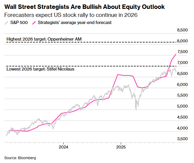 牛市信仰拉满!华尔街一致押注美股连涨四年 AI热潮、货币宽松与经济韧性将成最大助力