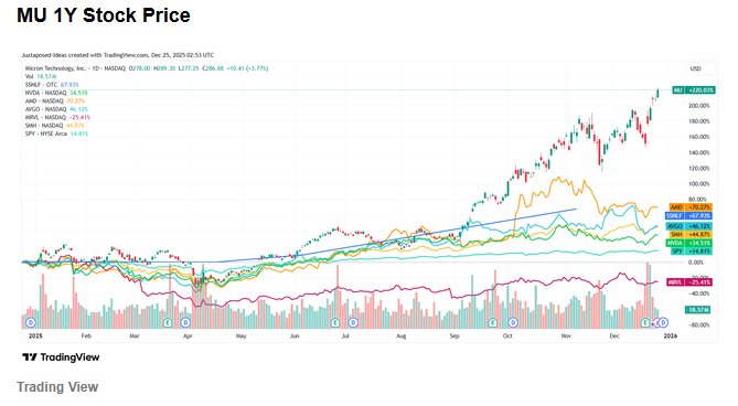 Micron stock price was in a relentless bull run in 2025, making it the top gainer in the Nasdaq 100 and S&P 500 indices. It jumped to a record high of $294, much higher than the year-to-date low of $6... ...