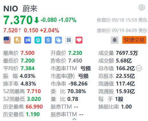 美股异动|蔚来盘前涨2% 将在2025年蔚来日推出特别版ET9