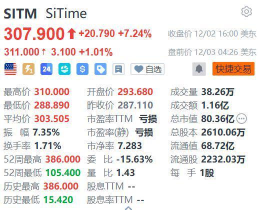 美股异动丨SiTime盘前续涨1% 消息称其正洽谈收购Renesas的计时部门