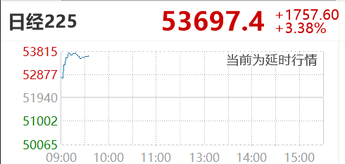 日经225暴涨1800点创历史新高,半导体大涨,软银涨近6%