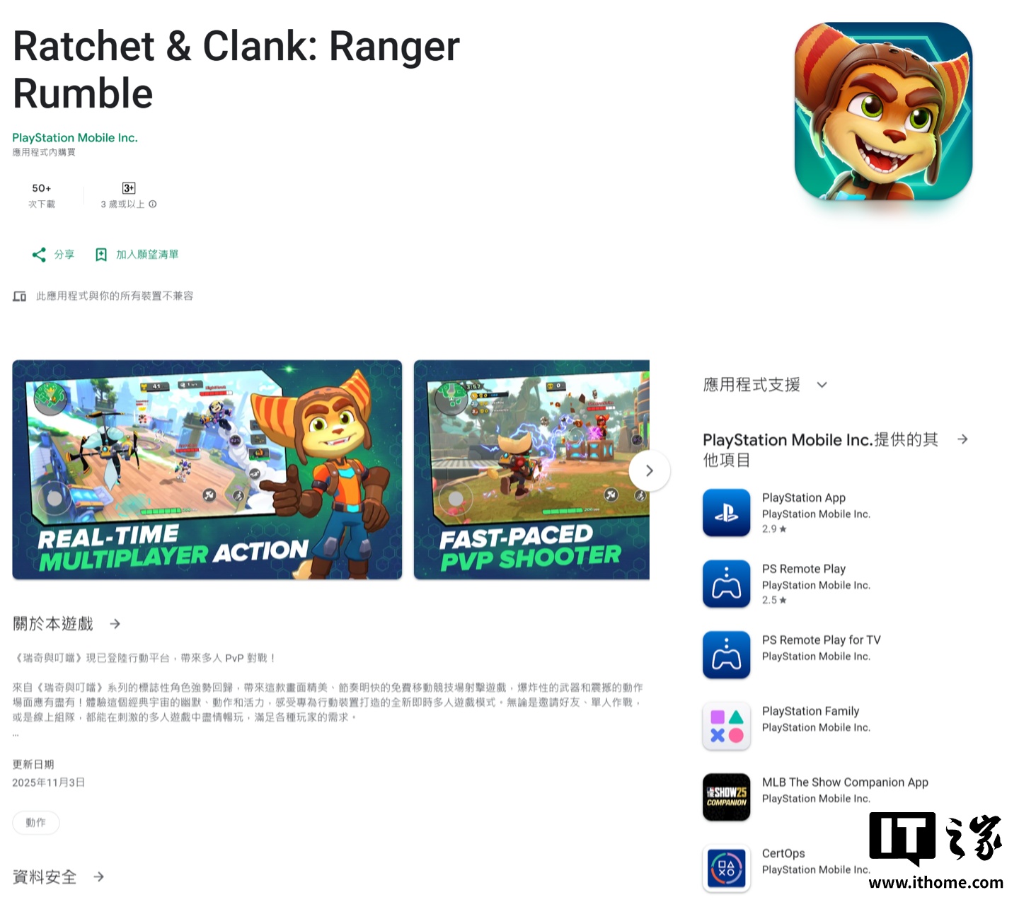索尼官宣《瑞奇与叮当:游侠乱斗》手游:主打多人 PvP 射击,登陆 iOS、Android 端