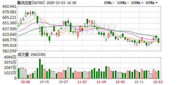 腾讯控股:12月23日回购105.1万股,回购总金额6.36亿港元