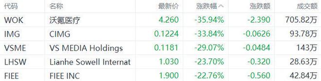 美股异动丨沃氪医疗暴跌96.59%,为跌幅最大的中概股