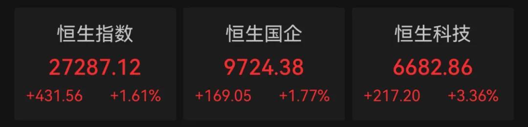 10月2日,港股全天保持强势,三大指数集体收涨。恒生行业指数多数收涨,半导体、电气设备、有色金属等板块涨幅居前。中芯国际全天走强,盘中及 收盘股价均创历史新高。 港股三大指数齐涨 10月2日,港股高开高走,三大指数集体收涨。截至收盘,恒生指数涨1.61%,报27287.12点;恒生国企指数涨1.77%,报9724.38点;恒生科技指数涨 3.36%,报6682.86点。 盘面上,半导体、电气设备、有色金属、医药生物、硬件设备等板块表现强势。半导体板块高开后持续走高,中芯国际涨逾12%,华虹半导体涨超7%; 电气设备板块高开跳水后快速拉升,中国高速传动、信义光能、博雷顿均涨超9%;医药生物板块全天表现强势,三叶草生物-B涨超21%,MIRXES-B涨超 17%,歌礼制药-B涨超14%。 中芯国际股价创新高 Wind数据显示,今日,中芯国际大涨12.70%,盘中股价站上90.35港元/股,盘中及收盘均创历史新高。中芯国际已连续3个交易日上涨,累计涨幅达 22.89%。 今年以来,中芯国际持续获资金青睐,截至9月30日,南向资金对其持股超25亿股,持股市值超2000亿港元,占总市值比例超20%。此外,多家机构给予 ...