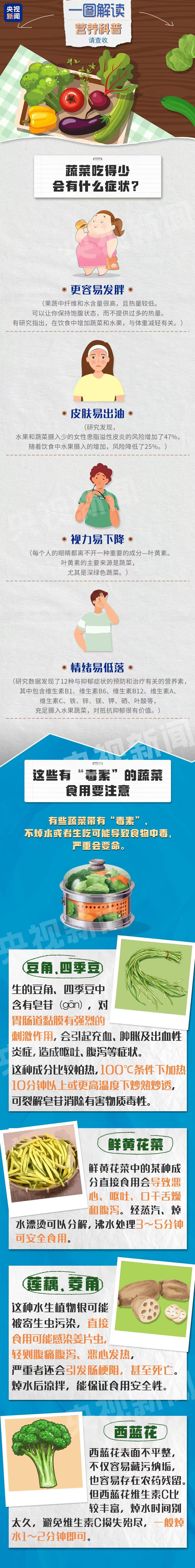 "国庆+中秋"双节假期开启多日,除了出去游玩,品尝各种美食也是不可或缺的一部分,火锅、烧烤、海鲜……在尽情享受美食的同时,小编提醒大家注 意均衡营养,别忘了吃蔬菜。 《中国居民膳食指南(2022)》中推荐 每人每天应摄入蔬菜300到500克 那你知道蔬菜吃得少会有什么症状吗? 怎样吃蔬菜更健康? 这份健康指南帮助大家"能量满满" ● 更容易发胖 ● (果蔬中纤维和水含量很高,且热量较低。 可以让你保持饱腹状态,而不提供过多的热量。 有研究指出,在饮食中增加蔬菜和水果,与体重减轻有关。) ● 皮肤易出油 · (研究发现, 水果和蔬菜摄入少的女性患脂溢性皮炎的风险增加了47%, 随着饮食中水果摄入的增加,风险降低了25%。) · 视力易下降。 (每个人的眼睛都离不开一种重要的成分一叶黄素。 叶黄素的主要来源是蔬菜, 尤其是深绿色蔬菜。) (研究数据发现了12种与抑郁症状的预防和治疗有关的营养素, 其中包含维生素B1、维生素B6、维生素B12、维生素A、 维生素C、铁、锌、镁、钾、硒、叶酸等, 充足摄入水果蔬菜,对抵抗抑郁很有价值。) 这些有"毒素" H THE S SHERE 有些研究部有"显露" 不熄水或者生吃 ...