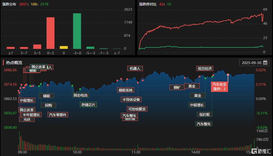 9月30日,沪指涨0.52%报3882点,深证成指涨0.35%,创业板指平收。市场热点聚焦存储芯片、锂矿、小金属、有色板块。 高位股方面,蓝丰生化晋级7连板,低价叠加芯片概念的山子高科13天8板,上海微电子概念股华建集团14天8板,有色金属板块全天强 势,其中精艺股份5天4板、博迁新材2连板。 下面我们来看下今日龙虎榜情况: 国盛金控(证券+国企改革+中报增长+处置股权) 龙虎榜单日净买入额前三为国盛金控、多氟多、盛屯矿业,分别为3.13亿元、2.82亿元、2.13亿元。 龙虎榜单日净卖出额前三为华工科技、江波龙、波长光电,分别为15.43亿、2.34亿元、1.56亿元。 龙虎榜中涉及机构专用席位的个股中,当日净买入额前三为多氟多、汇金股份、天际股份,分别为3.32亿元、2.23亿元、7750.28万 元。 龙虎榜中涉及机构专用席位的个股中,当日净卖出额前三为华工科技、初灵信息、景兴纸业,分别为7.26亿元、5866.78万元、5559.66 万元。 部分榜单个股题材: 精艺股份(铜加工+储能+控制权或变更) 今日涨停,全天换手率25.07%,成交额9.00亿元,振幅12.08%。龙虎榜数据显示,机构净买入9 ...