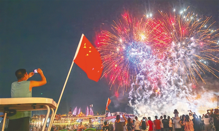 10月6日,众多市民游客在海口骑楼老街游玩、赏月。海南日报全媒体记者 李天平 摄 10月6日中秋夜,儋州海花岛旅游度假区内,璀璨烟花秀吸引游客驻足观看。当晚,该景区还同步上演无 人机大秀,为游客献上沉浸式光影盛宴。海南日报全媒体记者 陈元才 摄 ...