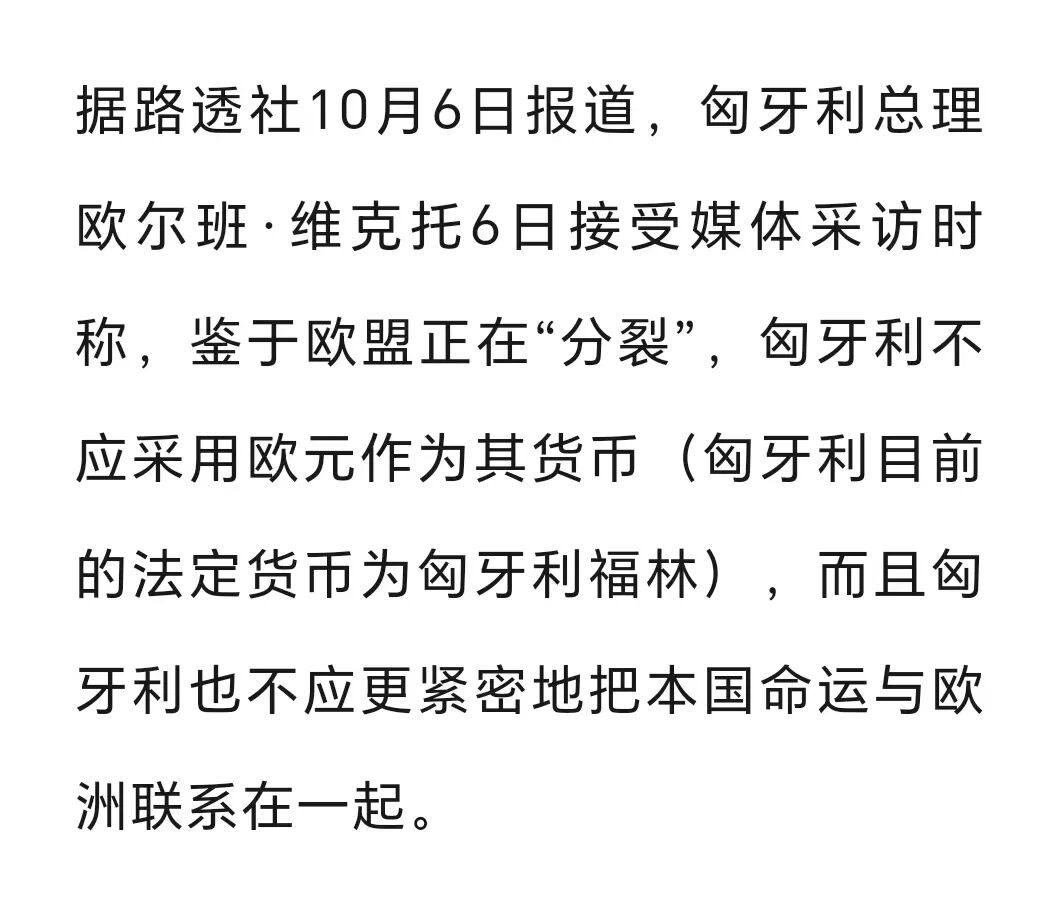 匈牙利总理欧尔班在当地时间6日播出的一档节目中表示,匈牙利政府没有加入欧元区的计划,目前匈牙利不应将自己的命运更紧密地与欧盟联系在一 起。 欧尔班还表示,匈牙利央行目前6.5%的利率"高于应有的水平",而且由于匈牙利央行行长沃尔高·米哈伊是个谨慎的人,降息步伐"比我们所希望的慢很 多"。 (文章来源:中国基金报) ...