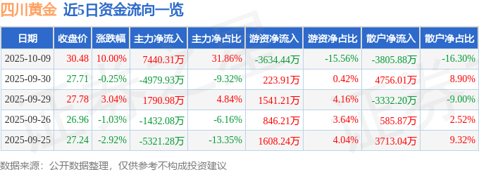 10月9日四川黄金(001337)涨停分析:金价新高、资源扩张、业绩增长驱动