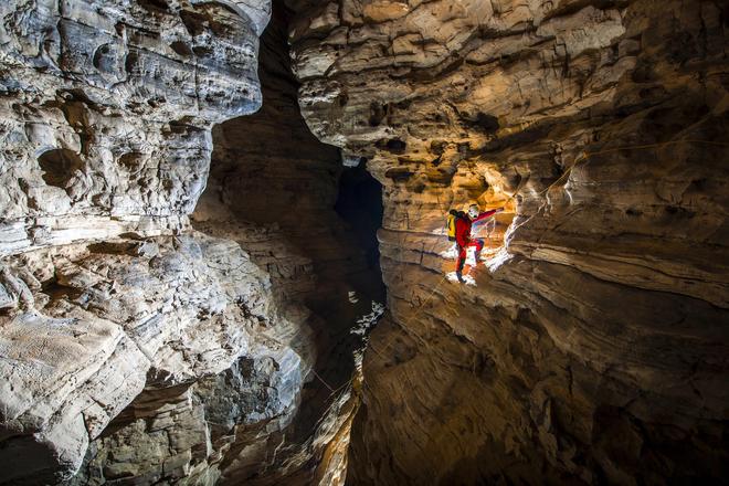 科研工作者在贵州绥阳县双河洞进行科学考察。(资料图片,受访者供图) 据贵州省山地资源研究所副所长周文龙介绍,来自贵州省山地资源研究所、贵州省洞穴协会和法国洞穴 联盟的专家共同组成的国际洞穴考察队,将对双河溶洞群开展系统性科学考察,其中包括双河洞未探明 区域的探测,探究影响双河洞系统形成发育的关键控制因素等,进一步探明和挖掘双河洞洞穴系统资源 和价值。 自20世纪80年代以来,双河洞已历经23次国际联合科学考察。截至目前,双河洞已探明连通长度达 437.1公里,纵深深度达912米,为"亚洲第一长洞""世界第三长洞"。(记者李黔渝) "亚洲第一长洞"贵州绥阳县双河洞10月11日启动第24次国际洞穴科学考察活动。本次科考活动将从11日 持续到31日。 ...