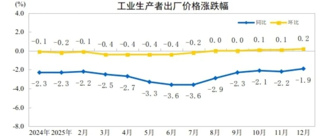 【数据发布】2025年12月份工业生产者出厂价格同比降幅收窄 环比涨幅扩大