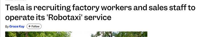 来源:环球网 外媒称,特斯拉已开始从工厂生产线上招募工人来运营其网约车车队。根据本月初出现在其工厂的海报 显示,特斯拉正向生产助理和物料搬运工提供额外的工时和薪酬,让他们担任人工智能操作员一职。海 报上还显示,如果员工推荐朋友担任人工智能操作员职位,即可获得 500 美元奖励。 据介绍,人工智能操作员坐在驾驶座上,在特斯拉FSD 软件启动时监控车辆,并在必要时接管驾驶。 特斯拉计划最终将该软件作为一项完全自动驾驶服务发布。 外媒表示,人员扩充或许有助于特斯拉加快服务速度。特斯拉9月份向公众推出Robotaxi应用程序后, 等待时间激增,一些乘客在社交媒体上反映,等待时间长达40分钟,而且车辆供应不足。(思瀚) 【环球网科技综合报道】12月22日消息,据《商业内幕》报道,特斯拉正全力投入其 Robotaxi服务—— 并让工厂工人和销售人员担任驾驶员来实现这一目标。 ...