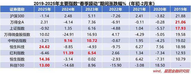 文章核心观点 - 2026年作为“十五五”规划开局之年,春季行情上演的条件更为成熟,且行情启动节奏可能前置至2025年12月底至2026年1月初 [1][7] - 春季行情的核心在于结构性机会而非单纯的指数上涨,投资者应重点关注科技创新与自主可控、周期复苏与供需格局改善、低估值与业绩稳健三大投资主线 [2][3][9][10] - 春季行情由政策预期窗口期、流动性环境相对友好、业绩数据真空期三重季节性利好共振驱动 [5][6] 春季行情历史特征 - 春季行情是年末至次年一季度常出现的阶段性上涨行情,由多重力量在特定时间窗口共振产生,过去七年(2019-2025年)中有四年市场录得正收益 [2] - 行情强度与结构差异显著:例如2019年万得全A指数上涨超20%,而2022年同期下跌近7%;风格轮动明显,如2023年成长股普涨,2024年则切换至以“中特估”、红利为代表的价值风格占优 [2] - 结构性机会突出:即便在指数表现平淡的年份,也存在显著的结构性超额收益,例如2025年初至2月末,上证指数微跌0.92%,但恒生科技指数上涨24.62%,万得微盘股指数上涨10.02%;2024年同期,在全市场多数指数下跌背景下,“中特估”指数上涨9.16%,红利指数上涨11.39% [3][4] 春季行情驱动逻辑 - **政策预期窗口期**:每年12月的中央经济工作会议至次年3月全国两会期间,为市场提供了对产业扶持、宏观调控等政策的丰富想象与博弈空间,是主题投资活跃的黄金时段 [5] - **流动性环境相对友好**:年初银行信贷投放加大,宏观资金面阶段性宽松;同时机构新一年资产配置计划执行及居民年终奖再配置带来潜在增量资金 [5] - **业绩数据真空期**:一季度是上市公司财报真空期,市场更专注于对中长期产业趋势、盈利修复拐点等进行前瞻性布局与定价 [6] 2026年春季行情展望 - **政策期待值高**:作为“十五五”规划开局之年,市场对围绕科技创新、产业升级(如深化“人工智能+”)、优化供给结构等方面的政策举措抱有极高期待,历史经验表明五年规划首年的政策受益板块往往能获得显著超额收益 [7] - **盈利修复共识凝聚**:在稳定价格与“反内卷”政策推动下,2026年工业企业盈利有望步入修复通道,中游制造业可能迎来价格修复与供需格局优化双重利好;同时以AI为代表的科技领域商业化加速(2025年三季度TMT板块营收已显著提升)为盈利增长注入新动能 [7] - **资金面环境有利**:国内货币政策保持适度宽松;居民部门超额储蓄存在“储蓄搬家”潜力;保险资金等长期机构投资者持续增配权益资产;美联储进入降息周期有助于缓解全球流动性压力并吸引外资回流A股 [8] - **行情节奏可能前置**:由于2026年春节时间(2月17日)相对较晚,部分资金为抢占先机可能提前布局,推动行情在2025年12月底至2026年1月初启动 [8] 潜在投资主线 - **科技创新与自主可控核心主线**:紧扣AI技术从基础设施到商业落地的进程,市场焦点将从算力硬件转向具有实际场景突破和盈利改善能力的应用领域(如AI+传媒、游戏);半导体行业受益于全球周期回升与国产替代深化;机器人产业受益于国产化与成本下降 [9] - **周期复苏与供需格局改善主线**:“反内卷”政策推进下,部分中下游制造业和传统周期行业迎来供需再平衡拐点;若工业品价格温和回升,有色金属(铜、铝等)将受益;化工等板块在产能出清后,低库存状态使其具备价格弹性;中国优势制造业的出海逻辑与全球能源转型背景下的资源安全主题交织 [9] - **低估值与业绩稳健的均衡配置主线**:除银行、公用事业等传统高股息板块外,券商板块值得关注,其在市场活跃度提升(2025年日均成交额显著放大)、IPO市场复苏带来业绩支撑下,叠加当前板块估值仍处于相对低位(PE-TTM约17.5倍,历史分位数14%),兼具防御属性与潜在弹性 [10]