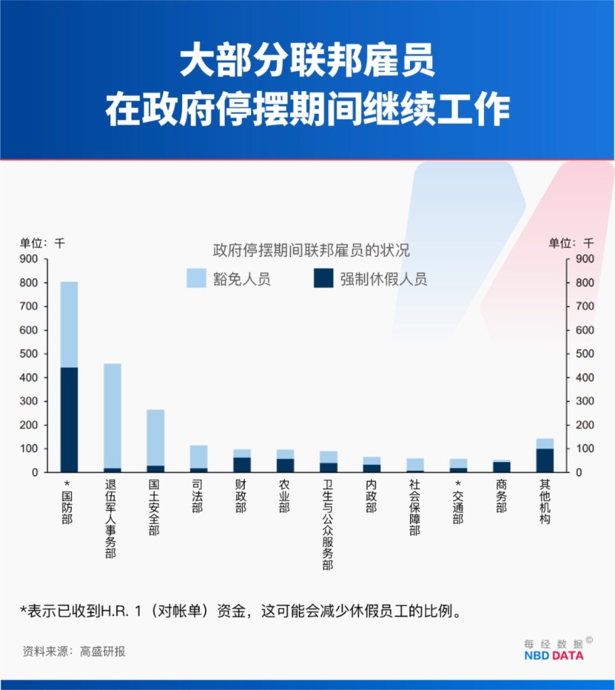 当地时间10月1日0时1分,美国联邦政府近7年以来再次关门。 美国政府"关门"并非新鲜事。据统计,自1980年以来美国已历经15次政府停摆,但此次局势尤为严峻:约75万联邦雇员或被迫无薪休假。不仅如此,在特 朗普政府此前的裁员"大刀"下,超过15万名联邦雇员也将被迫离职。 随着政府"关门",原定发布的各项重磅经济数据,如9月非农报告和9月消费者价格指数(CPI),都可能面临延迟。对于即将在10月28日至29日召开议息 会议的美联储而言,这无疑是"蒙眼开车"。 同时,这场治理危机也将直接拖累美国经济和资本市场表现。有分析称,美国政府"关门"一周,GDP就可能损失70亿美元。 约75万联邦雇员被迫无薪休假 据美国国会预算办公室,政府停摆期间,约75万联邦雇员被迫无薪休假,他们每天的薪酬总成本约为4亿美元。 "停摆"期间,边境保护、医院医疗、空中交通管制、执法和电网维护等必要的服务和项目将继续运行,运营这些项目所需的员工将继续工作,但在资金恢 复前是领不到薪资的。而依赖国会拨款资助的非必要政府项目和服务(称为可自由支配支出),如国家公园和博物馆,则将面临关闭的风险。 每经记者|兰素英 每经编辑|王嘉琦 高涵 美国劳 ...