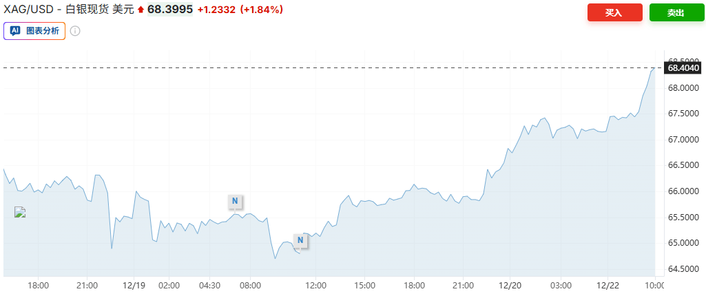 近期贵金属市场表现亮眼,白银价格持续刷新历史纪录,黄金价格同步走高,呈现强劲上涨行情。 截至周一生效数据,现货白银价格上涨1.84%至68.3995美元/盎司,现货黄金价格攀升至4383美元/盎司附近,突破10月份4381美元的历史高位,此 前两周已呈稳步上行态势。这波历史性行情背后,是供需格局、资金流向与政策预期的多重作用。 供需失衡与市场流动性紧张,是白银价格领涨的核心动力 10月份市场出现历史性轧空行情后,白银供应紧张局面持续,进一步放大价格上涨动能。交易端数据显示,本月初上海白银期货总成交量大幅攀 升,接近此前供应紧张时期的高位水平,反映出市场对白银的关注度与交易活跃度明显提升。白银需求端持续激增,主要交易中心出现供需错 位,供需缺口对价格上涨形成支撑。 宽松货币政策预期升温,为贵金属市场注入活力 市场对全球主要经济体货币政策宽松的预期不断强化,交易员普遍押注核心经济体明年实施两次降息。对于黄金、白银这类无利息收益资产,宽 松货币环境下持有成本降低,吸引力相应提升。近期公布的系列经济数据未明确经济前景,市场对政策宽松的预期已转化为实际买盘,推动贵金 属价格稳步走高。 大规模资金持续流入,是贵金属价格上 ...
