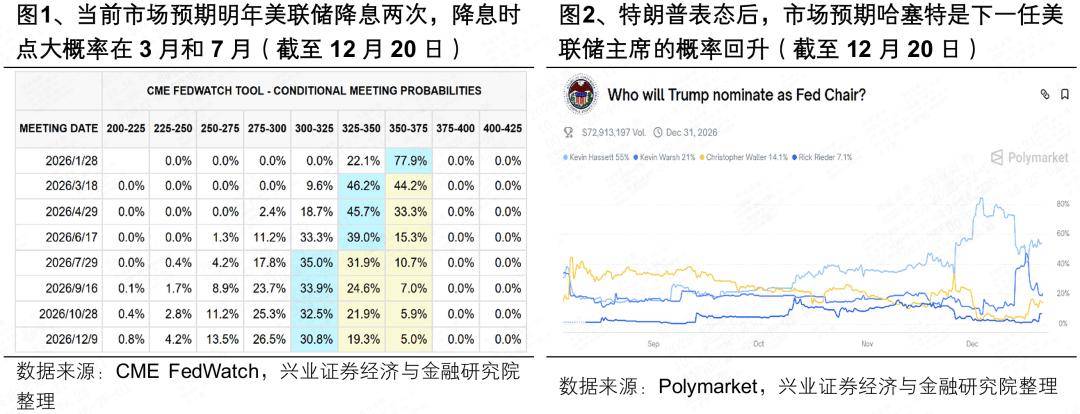 兴业证券A股市场展望与躁动行情布局策略 - 核心观点:兴业证券认为,随着国内外政策验证窗口落下帷幕,市场有望进入由流动性和风险偏好驱动的躁动行情 配置上应遵循“价值搭台 成长唱戏”的节奏 以景气预期为锚 布局AI产业趋势、优势制造业、“反内卷”及内需结构性复苏四大方向 [1][4][19][20] 一、市场环境与躁动行情基础 - 国内外政策验证窗口基本落下帷幕 整体基调好于市场预期 为躁动行情开启奠定良好基础 [4] - 美国11月失业率略有回升 CPI数据大幅低于预期 市场继续定价软着陆 叠加特朗普表态支持大幅降低利率 为美联储进一步宽松打开想象空间 [4] - CME FedWatch工具显示 市场预期美联储在2026年1月28日将利率维持在3.25%-3.50%区间的概率为77.9% 在3月18日维持在该区间的概率为44.2% [5] - 日本央行如期加息25个基点 但由于行长植田和男未给出明确加息路径 鹰派程度不及预期 缓解了市场对套息交易平仓冲击流动性的担忧 [7] - 国内中央经济工作会议后政策环境持续偏积极、偏呵护 资金行为有望从观望博弈转向积极寻找机会 [8] 二、躁动行情的历史规律与潜在启动信号 - 历轮躁动行情开启大多需要标志性事件催化 根据启动时间可分为三类:11月启动需强宏观政策明确转向 12月启动是年初偏强市场在岁末扰动缓解后开启 1-2月启动是历史上最常见的时点 [9] - 复盘历史躁动行情 例如2008年由“四万亿”政策催化 期间建筑材料行业上涨119% 有色金属上涨107% 国防军工上涨103% [11] - 2019年由中美就第一阶段经贸协议文本达成一致催化 2020年由海外不确定性落地及公募基金天量发行推动 [11][12] - 本轮情况较为符合第二类(12月启动) 即年初以来市场表现偏强、临近岁末扰动缓解后开启躁动 [11] - 躁动行情前置开启通常需要三个条件:年末会议偏积极政策定调托底风险偏好 经济基本面稳中向好 货币政策及流动性充裕 [13] - 本轮已具备良好基础:经济工作会议延续偏扩张的积极定调 宏观与微观数据有望继续验证国内基本面改善 宏观流动性充裕且降准降息仍是可选项 [13] - 潜在的躁动行情启动信号主要有三类:前期压制市场的不确定性因素落地 降准降息等宽松政策催化 关键数据验证基本面向好 [18] - 本轮需关注岁末年初降准降息落地的可能性 以及PPI、PMI、M1、社融信贷、上市公司年报预告等关键数据对基本面预期的提振 [18] 三、配置节奏与市场风格 - 岁末年初市场风格呈现“价值搭台 成长唱戏”特征 [19] - 12月至1月 市场风格通常较为均衡 大盘、低估值、顺周期风格相对占优 这与年末稳增长政策加力预期及险资等配置型资金偏好大盘红利风格有关 [1][19] - 随着春节临近直到两会前 市场进入典型的由流动性和风险偏好驱动的躁动窗口 风格转为小盘、科技成长等高弹性板块明显占优 [1][19] 四、高景气行业投资方向 - 根据一致预测 2026年预测净利润增速大于30%的高景气行业可概括为四条线索 [1][20] - **AI产业趋势**:硬件包括通信设备、元件、半导体产业链、消费电子 软件应用包括IT服务、软件开发、游戏、广告营销 [1][20][25] - **优势制造业**:新能源产业链(锂电池、锂矿、风电设备、新能车)、军工(地面兵装、航空航天装备、军工电子)、机械(机器人、机床)、医药(创新药) [1][20][25] - **“反内卷”**:钢铁、建材(水泥、玻璃玻纤、装修建材、塑料)、化工(化学原料、化学纤维、橡胶)、新能源(光伏、硅料硅片)、航空机场 [2][20][23] - **内需结构性复苏**:服务消费(影视院线、教育、零售、电商、酒店餐饮、旅游景区、医院)、新消费(休闲食品、文娱用品)、服装家纺 [3][20][23] 五、具体板块配置建议 - 顺周期板块:重视受益于海外宽松和国内PPI上行预期的“反内卷”及涨价资源品(化工、钢铁、有色) 消费板块中具备内需修复动力、政策倾斜的新消费及服务消费(零售、休闲食品、教育、出行链等)、农业 以及非银金融在躁动行情中的向上弹性 [23] - 科技成长板块:海外流动性预期转暖、国内风险偏好提升 适合科技成长配置的环境正在回归 若躁动信号明确 板块向上弹性有望进一步打开 [25] - AI内部重视国产半导体产业链(国产芯片龙头、上游设备材料产业链、国内存储芯片龙头)、AI端侧和软件应用(人形机器人、游戏、港股互联网、软件) [25] - 海外宽松环境下 流动性敏感的创新药迎来配置时点 商业航天产业趋势继续为军工补涨提供弹性 [25]