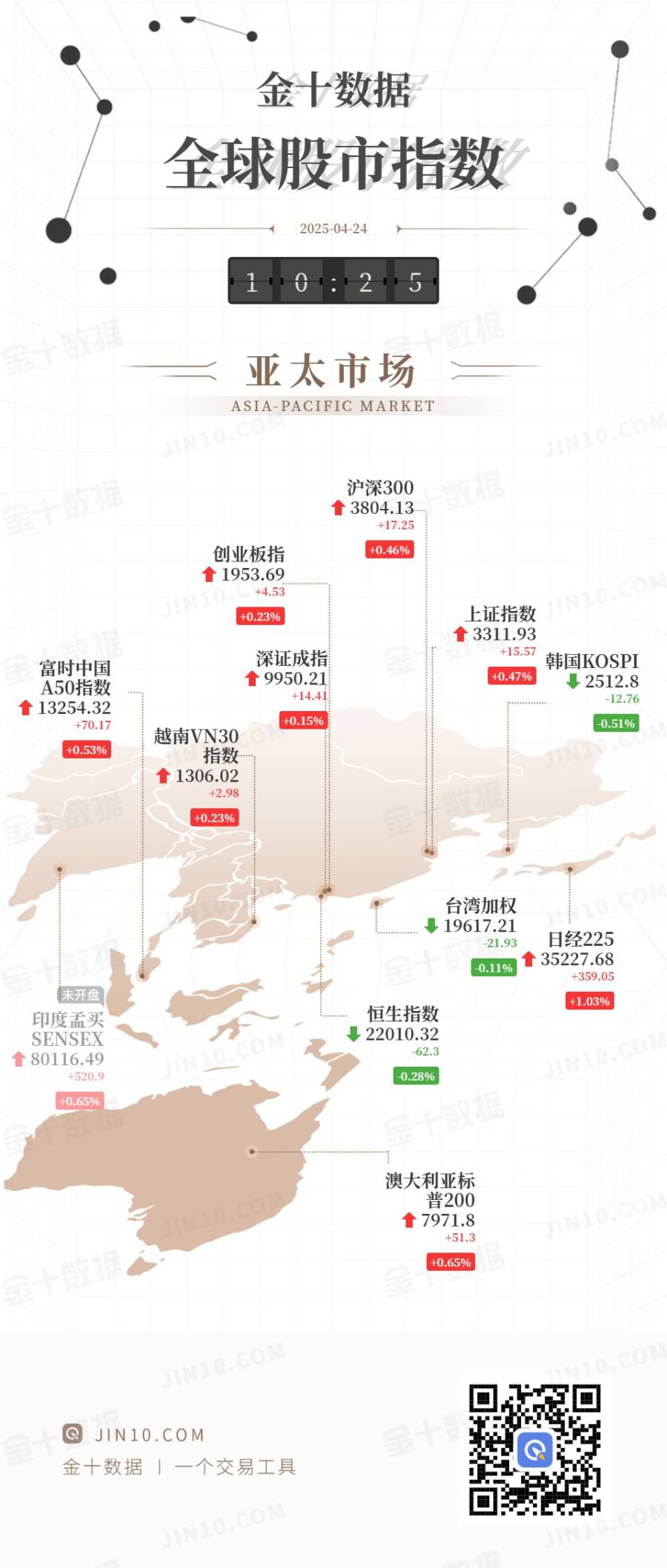 金十图示:2025年04月24日(周四)亚太市场股市指数(盘初)