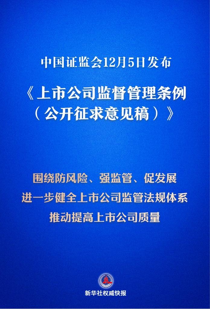 2025.12. 06 本文字数:2440,阅读时长大约5分钟 作者 | 第一财经 杜卿卿 12月5日,证监会就《上市公司监督管理条例》草案(下称条例)向社会公开征求意见。全文超过 1.2万字,共八章七十四条内容,覆盖上市公司"全生命周期",针对公司治理、信息披露、并购重 组、投资者保护、打击违法违规等重点内容都作了详细规定。 在业内人士看来,条例意见稿坚持了问题导向,即突出对公司治理的规范、突出对并购重组活动的支 持、突出对违法行为的打击、突出对投资者的保护。 "新'国九条'明确提出,要出台上市公司监督管理条例。条例向社会公开征求意见,意味着这一立法 工作取得实质进展,对推动提高上市公司质量、强化上市公司监管意义重大。"有业内人士告诉第一 财经,《证券法》《公司法》分别对上市公司信息披露、公司治理等提出明确要求,但法律规定相对 原则,亟待一部行政法规补足上市公司监管法律体系的关键一环。而条例的制定,正是健全上市公司 监管法规体系的重要举措,有望为上市公司监管以及促进上市公司高质量发展,提供更充分的法律依 据。 北京大学法学院教授郭雳对第一财经表示,条例作为关键一环,将衔接串联起作为基础性法律的《证 券法》《 ...