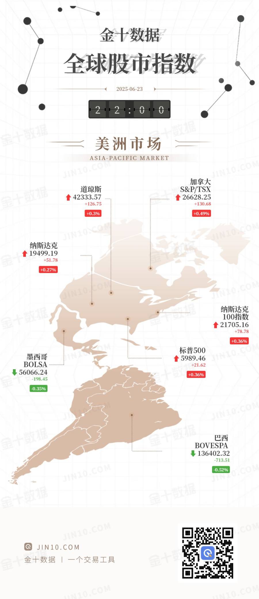 金十图示:2025年06月23日(周一)全球股市指数-美洲市场(收盘)