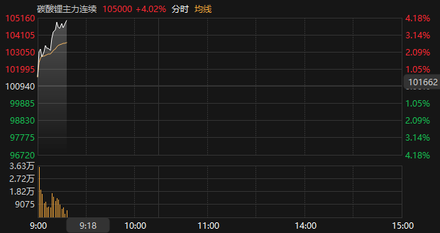 碳酸锂期货连续主力合约高开高走 日内涨超4%