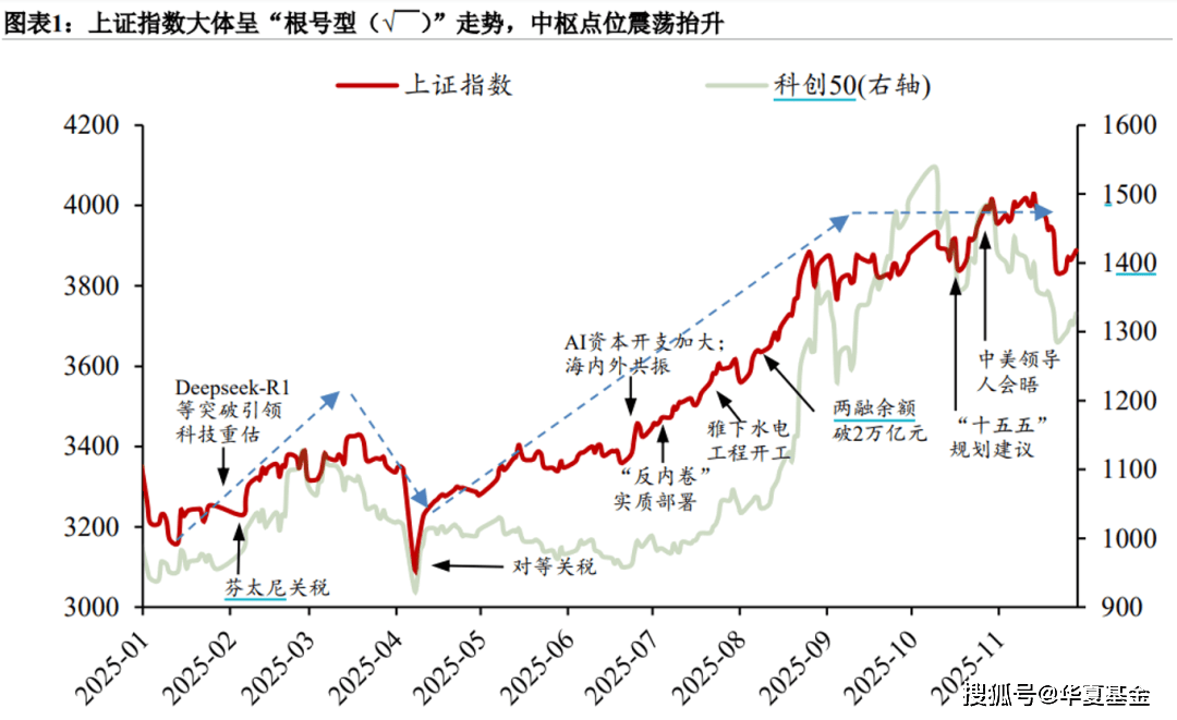 还有一周,2025年就要过去了。此时此刻,各类年度报告正在紧锣密鼓的做最后的筹备,飞行航线、消费记录、理财战绩、听歌时长、书影音评分排行、 外卖最晚的点单… AI以前所未有之势嵌入各行各业的年代,算法极尽精微,从数据汪洋里为每个人捕捉生活的痕迹,投资作为我们生活的重要组成部分,也需要一份年度 复盘报告。 你会如何回望2025年的A股投资?过去一年,A股市场在分化中演进:有人看到指数新高,有人感受结构变迁;有人猫冬保住收益,有人已在布局来年。 #√ ̄型走势下 在哪里赚过、在哪里错过 2025年,在中国科技叙事引领下,A股走出了资产大年。上证指数大体呈"根号型(√ ̄)"走势,拾级而上,中枢点位从年初 3200 点抬升至 3900 点左 右。 (来源:Wind,粤开证券研究所) 一季度,以 DeepSeek 为代表的科技突破,重塑了中国叙事,提振了社会预期,引发了市场对科技股乃至中国资产的重估热潮。上证指数于 1-3 月期间持 续走强,区间最高涨幅达 8.5%。 (来源:Wind) 二季度,关税战一度引发市场恐慌,砸出"黄金坑",但由于我国完备工业体系给予的底气、稳市资金入市带来的信心以及宏观政策的有力支撑,市场情 ...