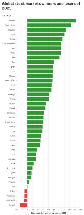 2025 年全球股市涨跌榜:赢家与输家盘点,2026年走势展望
