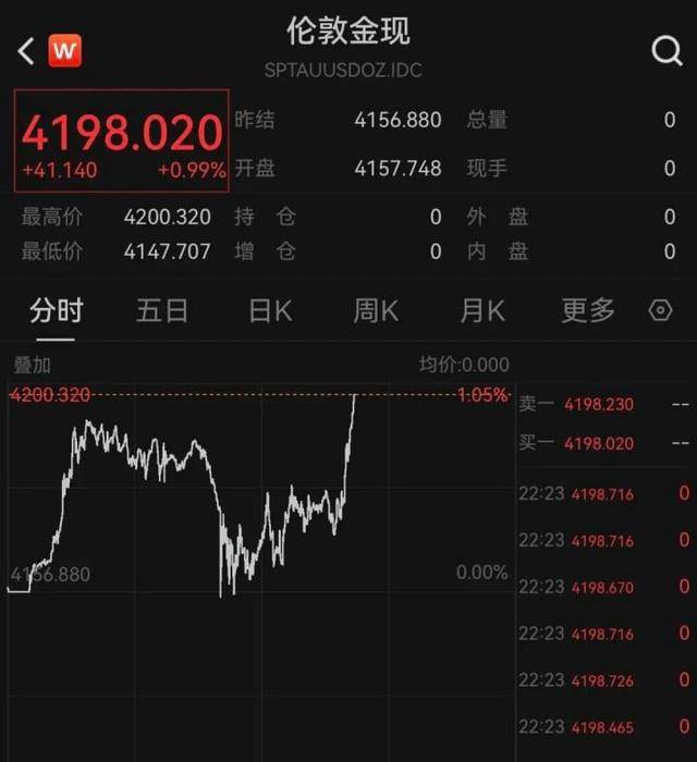 黄金价格表现 - 现货黄金(伦敦金现)盘中一度突破4200美元/盎司,刷新近两周盘中新高,截至发稿报4198.020美元/盎司,上涨近1% [1] - COMEX黄金期货同步上涨,报4222.8美元/盎司 [1] 市场驱动因素与机构观点 - CME数据显示,美联储12月降息25个基点的概率升至86.9%,美联储降息周期未结束,金价支撑增强,长线看涨逻辑清晰 [3] - 贵金属市场短期预计在避险需求与政策观望之间维持震荡格局 [3] - 技术面上,纽约黄金需重点关注能否有效站稳4200美元/盎司一线,若能企稳则下一阻力位上看4250美元/盎司附近 [3] 白银市场表现 - 现货白银日内涨幅扩大至超2%,报54.62美元/盎司,创历史新高 [3]