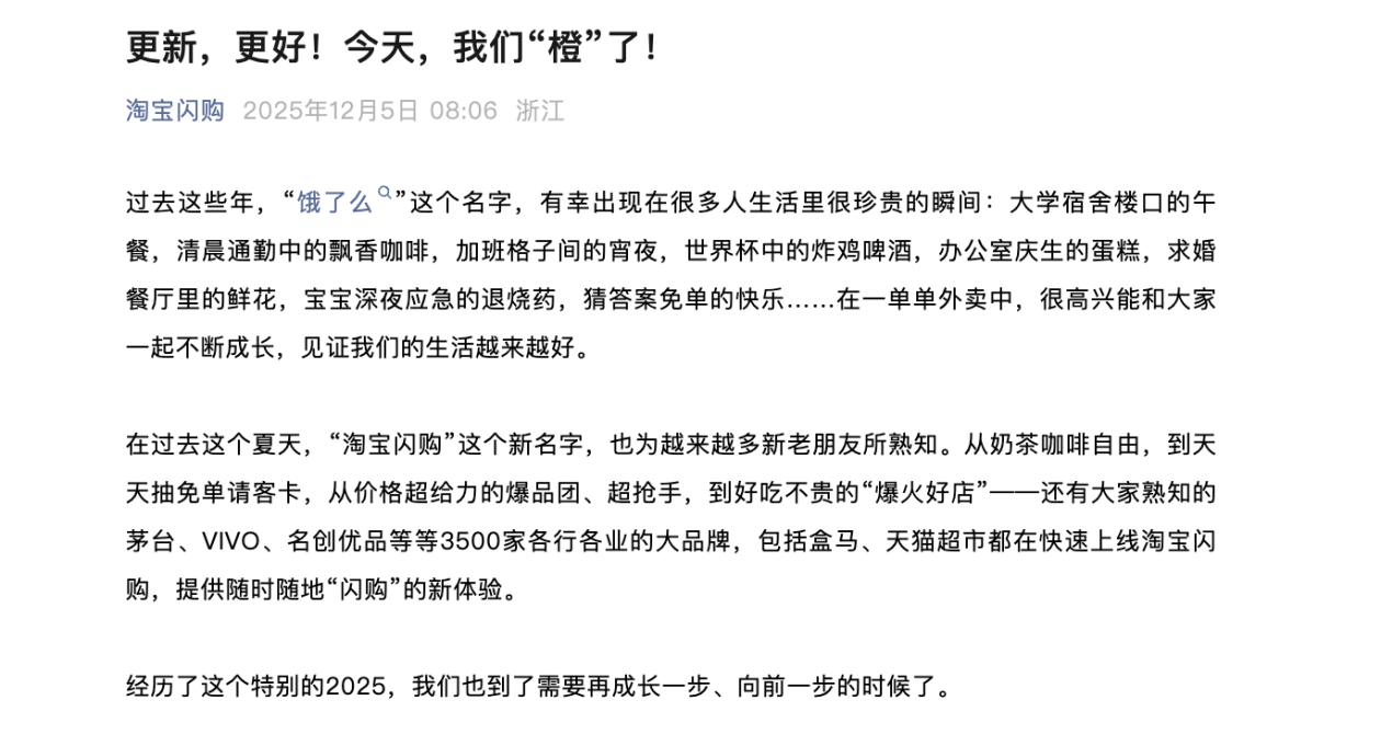 饿了么App品牌焕新为淘宝闪购:站在市场新格局,提供更新更好服务