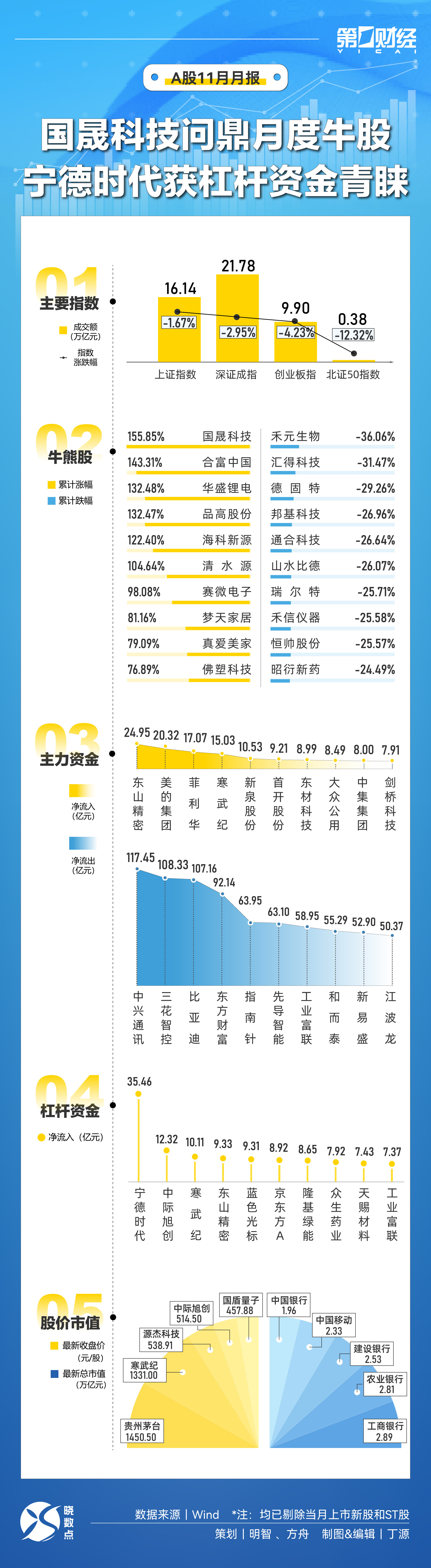 晓数点|速览11月A股:国晟科技问鼎月度牛股 宁德时代获杠杆资金青睐