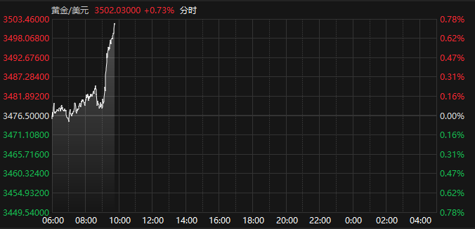 上证报中国证券网讯 据Choice数据,9月2日,国际现货黄金突破3500美元关口,截至9:45报3502.03美 元/盎司,创历史新高。 据Choice数据,9月2日,国际现货黄金突破3500美元关口,截至9:45报3502.03美元/盎司,创历史新 高。 ...
