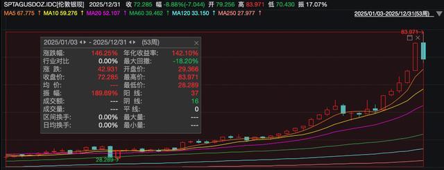 文章核心观点 - 2025年大宗商品市场呈现历史性分化格局,贵金属与工业金属引领史诗级牛市,而能源与农产品则深陷熊市 [1][2] 贵金属市场 - 现货白银全年涨幅约146%,创有史以来最大年度涨幅,价格一度突破每盎司83美元的历史新高 [1][3] - 现货黄金全年涨幅近60%,录得1979年以来最强表现,价格一度刷新纪录至每盎司4550美元 [1][5] - 铂金上涨超过110%,创下有史以来最大年度涨幅,一度触及2478.50美元的历史高位 [7] - 钯金上涨66%,创下15年来最佳年度表现 [7] - 贵金属上涨主要受美联储降息预期、地缘政治冲突、央行持续购金及交易所交易基金持仓增加推动 [1] - 白银上涨的驱动因素包括:被美国列为关键矿产、矿山产出增长缓慢且全球交易所库存处于历史低位、光伏产业用银量激增、以及降息周期与地缘风险下的避险与投资需求增长 [3] - 有分析预测到2026年第一季度末,金价或将上行挑战5000美元关口 [5] 工业金属市场 - 伦铜全年上涨近44%,创2009年以来最大年度涨幅,价格一度创下每吨12960美元的历史高位 [1][2][8] - 铜价上涨逻辑获得宏观与结构性支撑,包括全球主要央行的宽松转向、以人工智能为代表的科技资本开支浪潮,以及供应链安全驱动的战略性备货 [10] - 交易商为规避潜在贸易壁垒将铜实物运往美国,导致美国以外全球主要市场的现货供应骤然收紧,加剧价格波动 [8] - 铝价全年上涨17%,主要受全球范围内与能源转型相关的技术需求增长支撑 [10] - 锡价涨幅与铜相近,上涨动力主要源于全球主要产区的供应中断与出口政策收紧 [10] 碳酸锂市场 - 碳酸锂价格在2025年企稳并实现强劲反弹,全年累计涨幅超过50% [1][11] - 市场供需格局实质性改善,下游新能源汽车产销规模持续扩张与储能需求快速放量构成稳定需求基石,上游部分高成本产能逐步出清 [11] 能源市场 - WTI原油全年下跌超15%(另一处数据为下跌超18%),录得2020年以来最大年度跌幅 [1][2] - 油价疲软主要受非OPEC+国家产量增长与全球经济增长放缓预期影响,加剧市场对供应持续过剩的担忧 [2] - 国际能源署等权威机构预测2026年将出现巨大供应过剩,OPEC秘书处预期市场将出现温和盈余 [12] - 有分析师预计,在缺乏重大供给冲击的情况下,油价将在每桶50至70美元的区间内宽幅震荡 [12] - OPEC+计划于1月4日举行视频会议,预计将坚持暂停进一步增产的计划,其后续策略将取决于价格水平 [12] 农产品市场 - 可可价格暴跌48%,成为年度表现最差的大宗商品,主要因供应从紧张转为充裕 [1][2][15] - 原糖和罗布斯塔咖啡价格年内均下跌约五分之一 [15] - 芝加哥大豆有望小幅收涨,小麦和玉米则因全球供应充足而以弱势收官 [15] - 马来西亚基准棕榈油价格下跌9%,主要受供应充裕压制 [15] - 橡胶价格下跌9%,因泰国天气条件改善提升供应,且汽车行业轮胎需求持续低迷 [15]