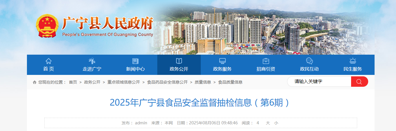 2025年广东省肇庆市广宁县食品安全监督抽检信息(第6期)
