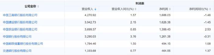 股份行分化较为明显。 营收方面,除了 浦发银行 、 民生银行 外,其余7家银行皆出现不同程度的下滑。同比降幅最高的是 平 安银行 ,达10.04%;其次为 华夏银行 ,同比降幅为5.86%。净利润方面,也有四家银行出现同比下 滑。如平安银行同比降幅为3.9%;民生银行同比降幅为5.43%,华夏银行同比降幅为7.64%。其中,民 生银行为"增收不增利", 招商银行 、 兴业银行 、 中信银行 等则为营收有所下滑,但利润保持增长。 | 公司全称 : | | 利润表 | | | | --- | --- | --- | --- | --- | | | 富亚收入 # | 营业收入园比(%) = | 净利润 > | 净利润可比(%) = | | 招商银行股份有限公司 | 1,699,69 | -1.72 | 754.05 | 0.03 | | 兴业银行股份有限公司 | 1,104,58 | -2.29 | 433.61 | 0.77 | | 中信银行股份有限公司 | 1,057,62 | -2.99 | 370.74 | 3.35 | | 上海浦东发展银行毅份有限公司 | 905.59 | 2.62 | 298.94 | ...