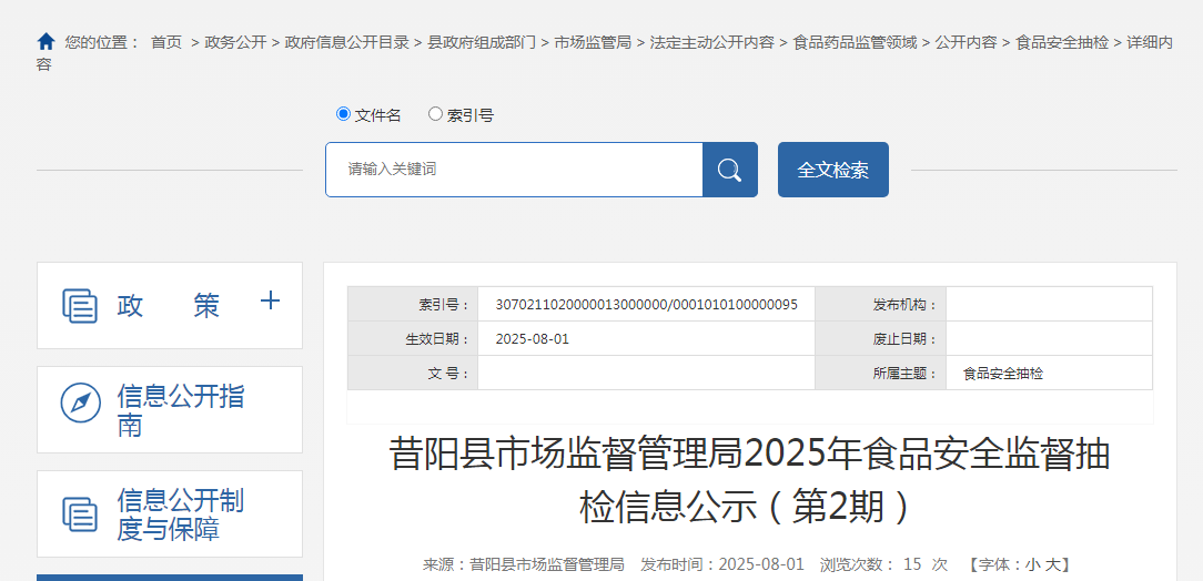 山西省昔阳县市场监督管理局2025年食品安全监督抽检信息公示(第2期)