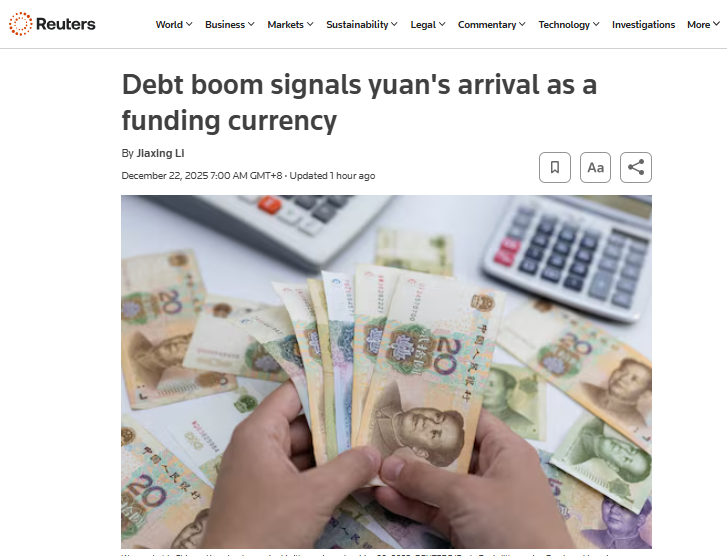 全球媒体聚焦|外媒:人民币融资掀国际热潮 市场需求成核心驱动