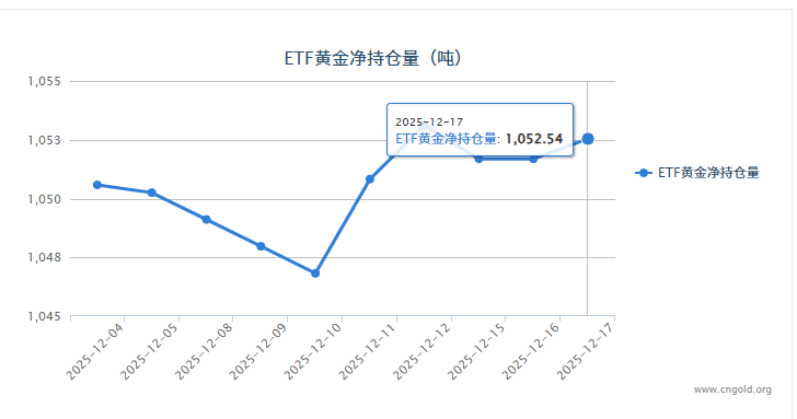 【黄金etf持仓量】12月17日黄金ETF较上一交易日增加0.85吨