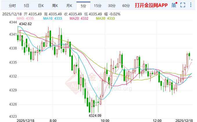 周四(12月18日)亚洲时段,现货黄金价格小幅回落,截至发稿,现货黄金暂报4333.19美元/盎司,下跌 0.09%,最高触及4342.65美元/盎司,最低下探4323.93美元/盎司。由于美元指数超跌反弹,金价小幅走 跌,但中期来看,黄金依然处于多头运行区间之内,基本面上最新公布的美国就业数据进一步强化了市 场对美联储未来降息的预期同时地缘政治风险再度升温,支撑金价。 地缘方面,若普京拒绝和平协议,美国将进一步制裁俄罗斯能源行业。据知情人士透露,若普京总统拒 绝与乌克兰达成和平协议,美国正准备对俄罗斯能源行业实施新一轮制裁,以加大对莫斯科的压力。 这些匿名透露私下商议情况的人士表示,美国正在考虑多种制裁方案,包括针对俄罗斯所谓"影子舰 队"中用于运输其石油的油轮,以及为相关交易提供便利的贸易商。部分人士称,新制裁措施最早可能 于本周公布。 美联储理事Christopher Waller支持进一步降息,让利率回到中性水平,同时也表示决策者无需操之过 急。Waller周三表示,在通胀持续放缓至2026年的情景下,当前货币政策利率水平较中性利率高出多达 100个基点。中性利率指美联储既不会抑制增长也不会推高通胀的 ...