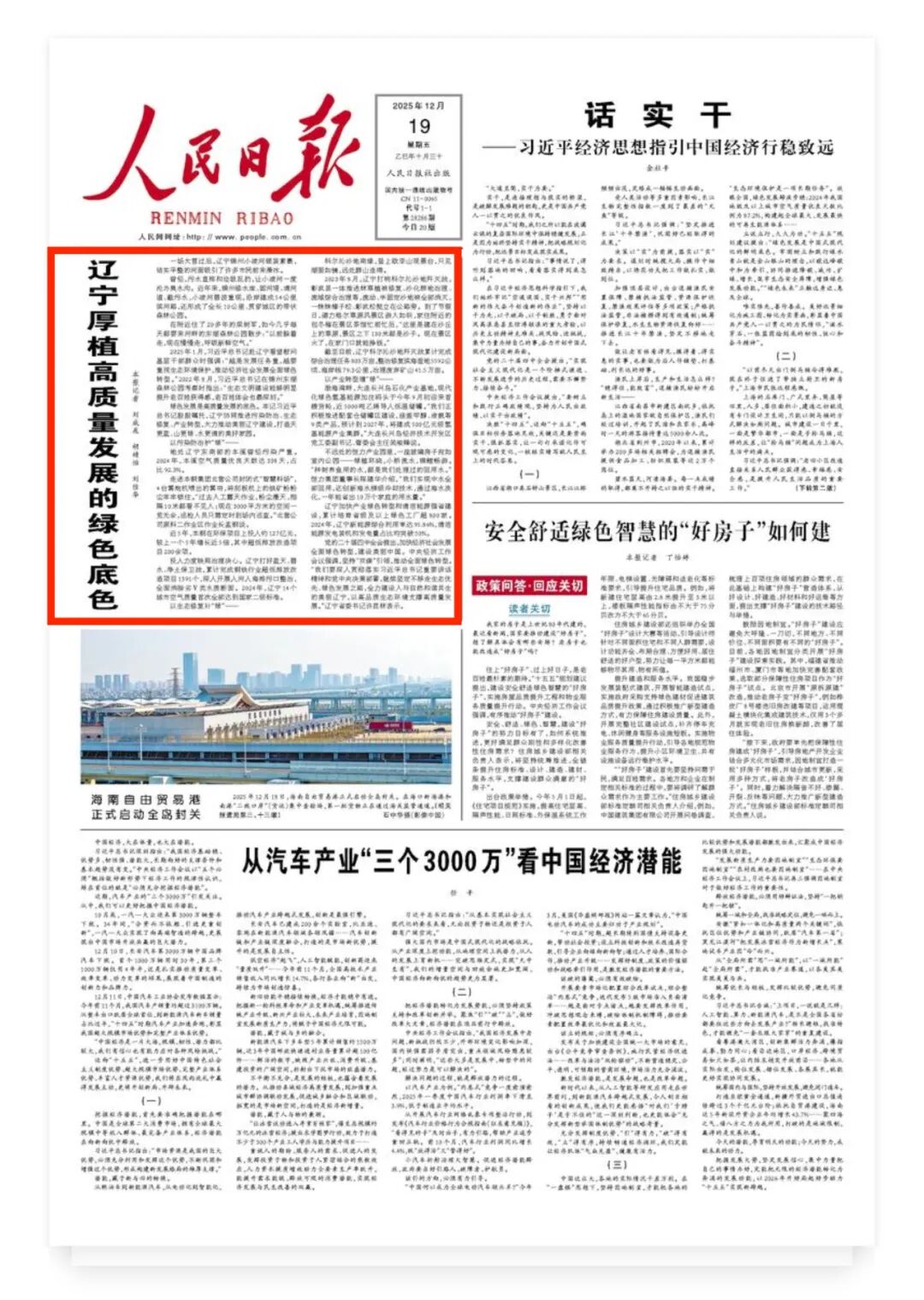 人民日报头版头题聚焦辽宁