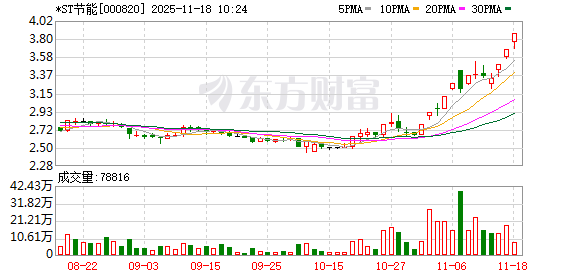 *ST节能盘中涨停,已连收3个涨停板,截至9:37,该股报3.86元,换手率2.50%,成交量743.34万股, 成交金额2819.30万元,涨停板封单金额为1109.56万元。连续涨停期间,该股累计上涨15.92%,累计换 手率为13.16%。最新A股总市值达24.96亿元,A股流通市值11.46亿元。 近日该股表现 | 日期 | 当日涨跌幅(%) | 换手率(%) | 主力资金净流入(万元) | | --- | --- | --- | --- | | 2025.11.17 | 5.14 | 6.14 | -87.68 | | 2025.11.14 | 5.11 | 4.51 | 1194.81 | | 2025.11.13 | -0.60 | 4.64 | -554.87 | | 2025.11.12 | -0.89 | 5.14 | -419.40 | | 2025.11.11 | 0.60 | 7.76 | -469.89 | | 2025.11.10 | 5.00 | 5.11 | 658.80 | | 2025.11.07 | -2.14 | 13.27 | -1155.47 | | 2025.1 ...