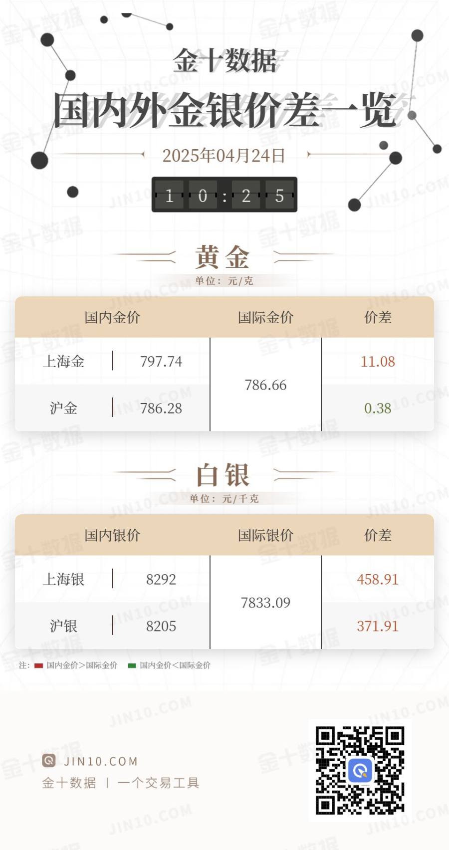 金十图示:2025年04月30日(周三)上海金早盘价为782.46元/克,较国际金价(774.15元/克),高8.31元/克 l 注:■ 国内金价>国际金价 ■ 国内金价<国际金价 @ JIN10.COM 金十数据 | 一个交易工具 JIN10.COM and and and the states of the states of the states of the states of the states of the states of the states of the states of the states of the state of the state of the stat ------------ ...