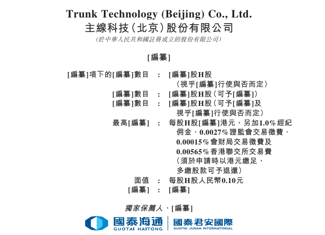 据港交所12月11日披露,主线科技(北京)股份有限公司(简称:主线科技)递表港交所主板,国泰海通为 其独家保荐人。招股书显示,主线科技是一家L4级自动驾驶卡车及解决方案提供商。公司以自主研发 的自动驾驶系统为核心,构建了"车-端-云"一体化的产品生态系统,为物流运输全场景提供全栈解决方 案。 | 編纂]項下的[編纂]數目 : [編纂]股H股 | | | --- | --- | | (視乎[編纂]行使與否而定) | | | [編纂]數目 ። | [编纂]股H股(可予[编纂]) | | [編纂]數目 | :「編纂]股H股(可予[編纂]及 | | 視乎[編纂]行使與否而定) | | | 最高[編纂] : | 每股H股[編纂]港元,另加1.0%經論 | | 佣金、0.0027%證監會交易徵費、 | | | 0.00015%曾財局交易徵費及 | | | 0.00565%香港聯交所交易費 | | | (須於申請時以港元繳足, | | | 多繳股款可予退還) | | | 面值 : | 每股H股人民幣0.10元 | | [編纂] : [編纂] | | 公司的解决方案包含三大核心产品:AiTruck(智能卡车)、AiBox(智 ...