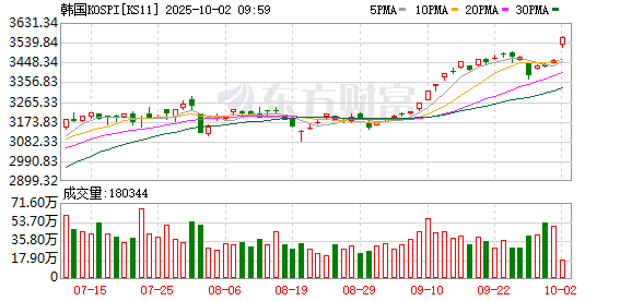 大涨!韩国KOSPI指数再创历史新高 9月份出口创三年半新高