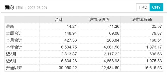 85%的收益率!这个数字足以让任何投资者眼前一亮,更别说这还是在港股这个被很多人嫌弃的市场里 跑出来的成绩。 说起来也挺有意思,去年还有不少人在唱衰港股,什么"港股已死论"满天飞。结果今年上半年,港股来 了个华丽转身,恒生科技指数、恒生指数、恒生国企指数年内涨幅都逼近20%。 这波行情的幕后推手其实很明确——南向资金。截至6月20日,南向资金年内净买入6500亿元,比去年 同期翻倍,且逼近2024年全年历史峰值。内地资金用真金白银给港股投了信任票,这才是港股反弹的核 心驱动力。 | 南向(截止:2025-06-20) | | | HKD CNY | | --- | --- | --- | --- | | | 合计 | 沪市港股通 | 深市港股通 | | 最新 | 14.21 | -11.36 | 25.57 | | 本周合计 | 148.94 | 69.08 | 79.87 | | 本月合计 | 427.36 | 266.84 | 160.51 | | 本年合计 | 6,534.75 | 4,661.58 | 1,873.17 | | 近3月 | 2,813.87 | 2.117.22 | 696.66 | ...