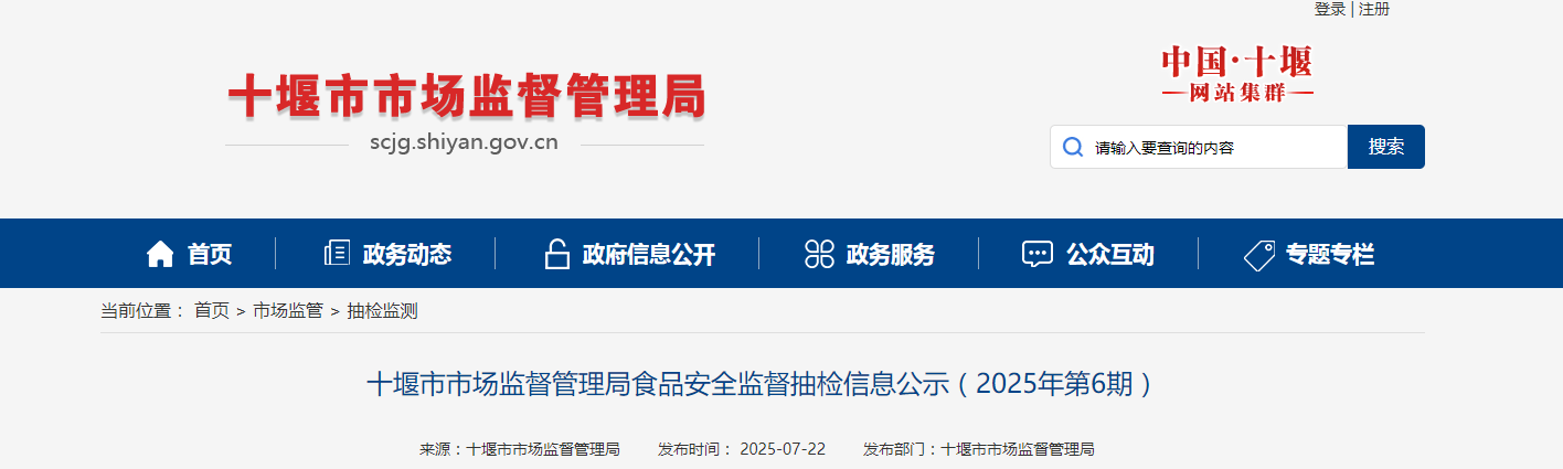 湖北省十堰市市场监督管理局食品安全监督抽检信息公示(2025年第6期)