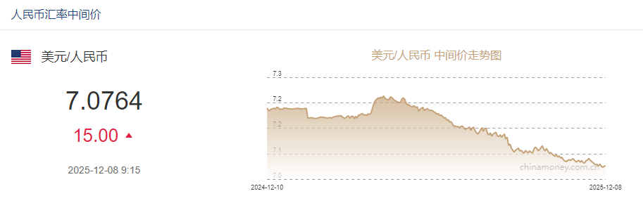 美联储货币政策 - 美联储于12月10日宣布将联邦基金利率目标区间下调25个基点至3.5%至3.75% [1] - 这是美联储在年内的第三次降息 [1] 人民币汇率市场表现 - 12月11日,在岸人民币对美元汇率盘中一度升至7.0550 [1] - 人民币汇率距离“破7”更进一步 [1] 汇率走势分析与展望 - 由于各种积极因素不断积累,人民币汇率或已走出前期单边下行的行情 [1] - 当前无论从理论还是市场看,人民币都没有出现明显失衡,影响汇率涨跌的因素同时存在 [1] - 在某些时候上涨因素占上风,人民币就升值;在某些时候下跌因素占上风,人民币就贬值 [1] - 在利多因素主导下,人民币对美元“升破7”是有可能的,但能否站稳仍不确定 [1]